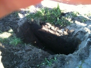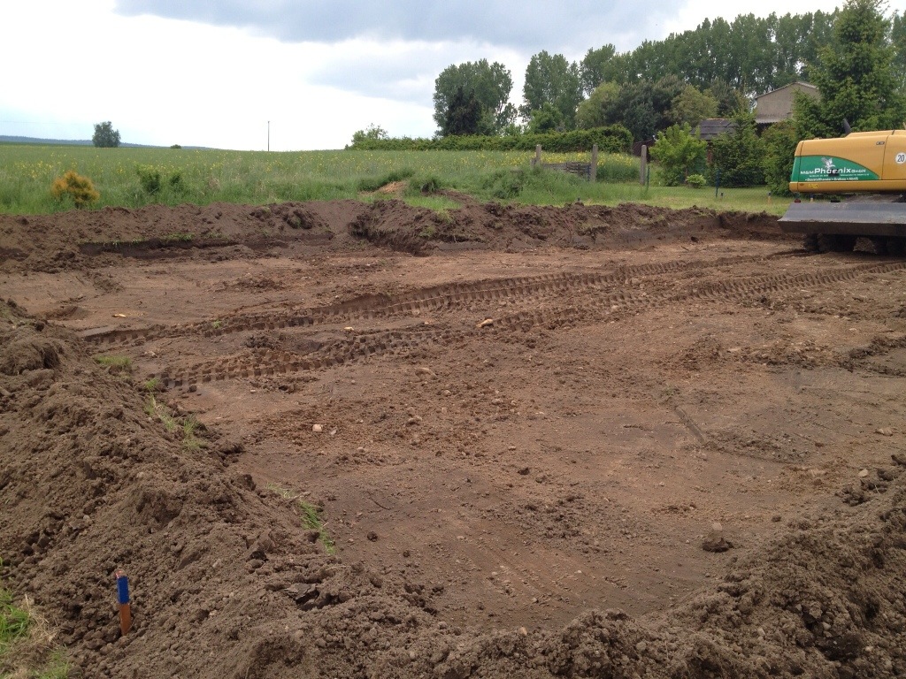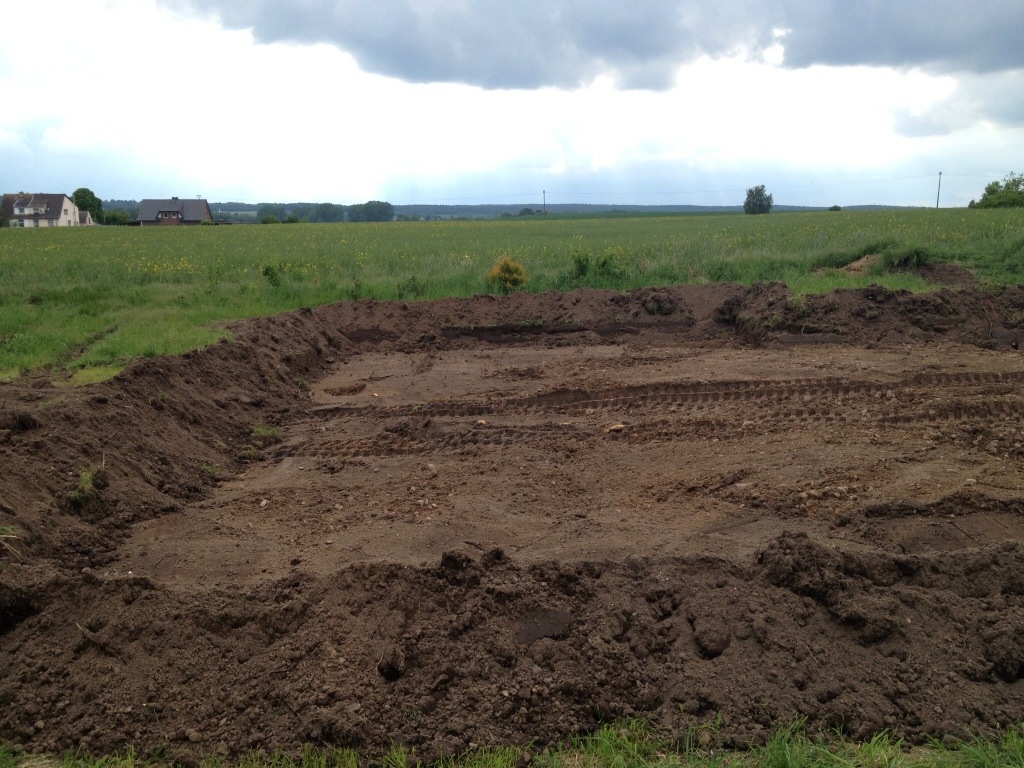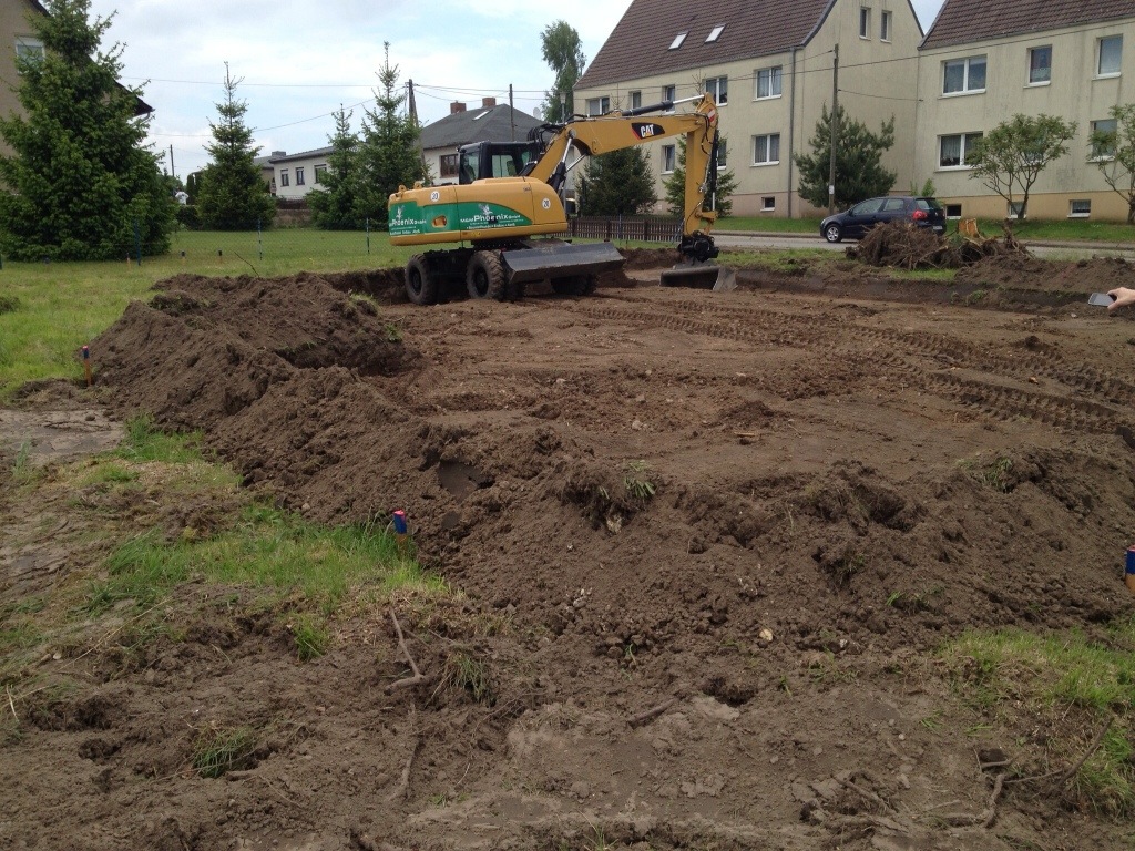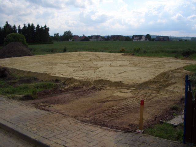 Der Anfang ist gemacht. Die alten Stahlbetonzaunpfähle sind entfernt, die Wurzeln raus und die Baugrube ausgehoben. Nächste Woche gehts mit der Bodenplatte weiter. 😉