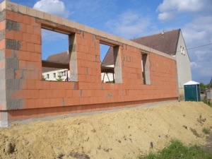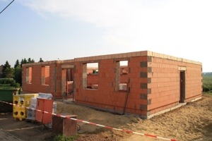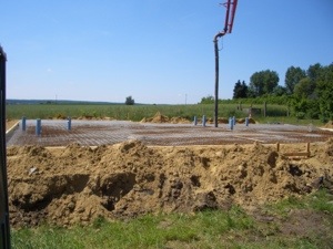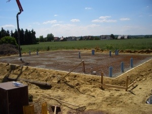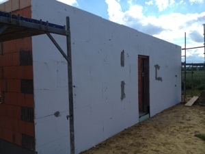 Nachdem es sehr heiß war und wir die Bodenplatte das WE gut wässern mussten, kamen am Mittwoch schon die Maurer und begannen den Rohbau. So sah es dann Freitag aus: 3Tage Rohbau: